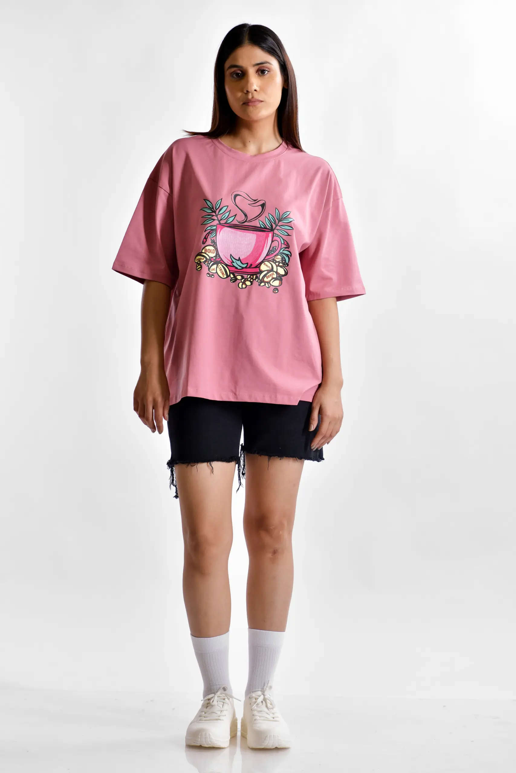 Introducing our exclusive oversized T-shirt for women, featuring a unique and eye-catching printed design that effortlessly combines comfort with style. Crafted from high-quality, breathable fabric, this T-shirt is designed to provide a relaxed fit, making it perfect for casual outings or lounging at home.