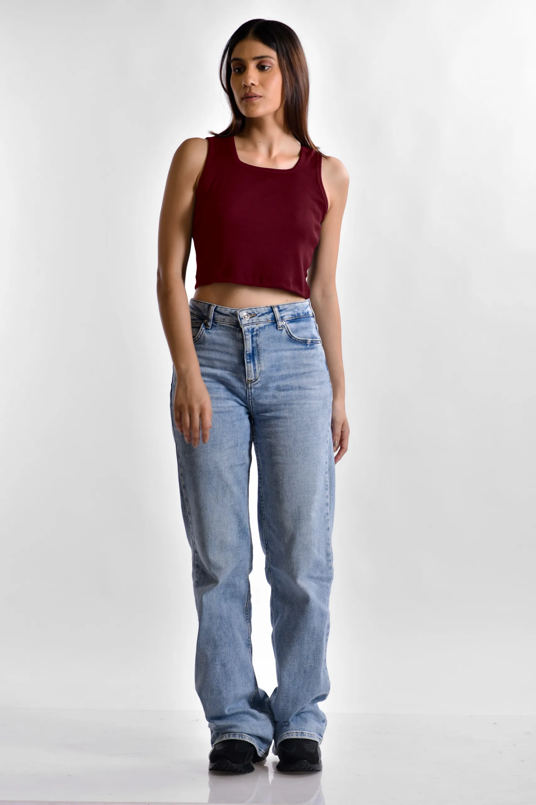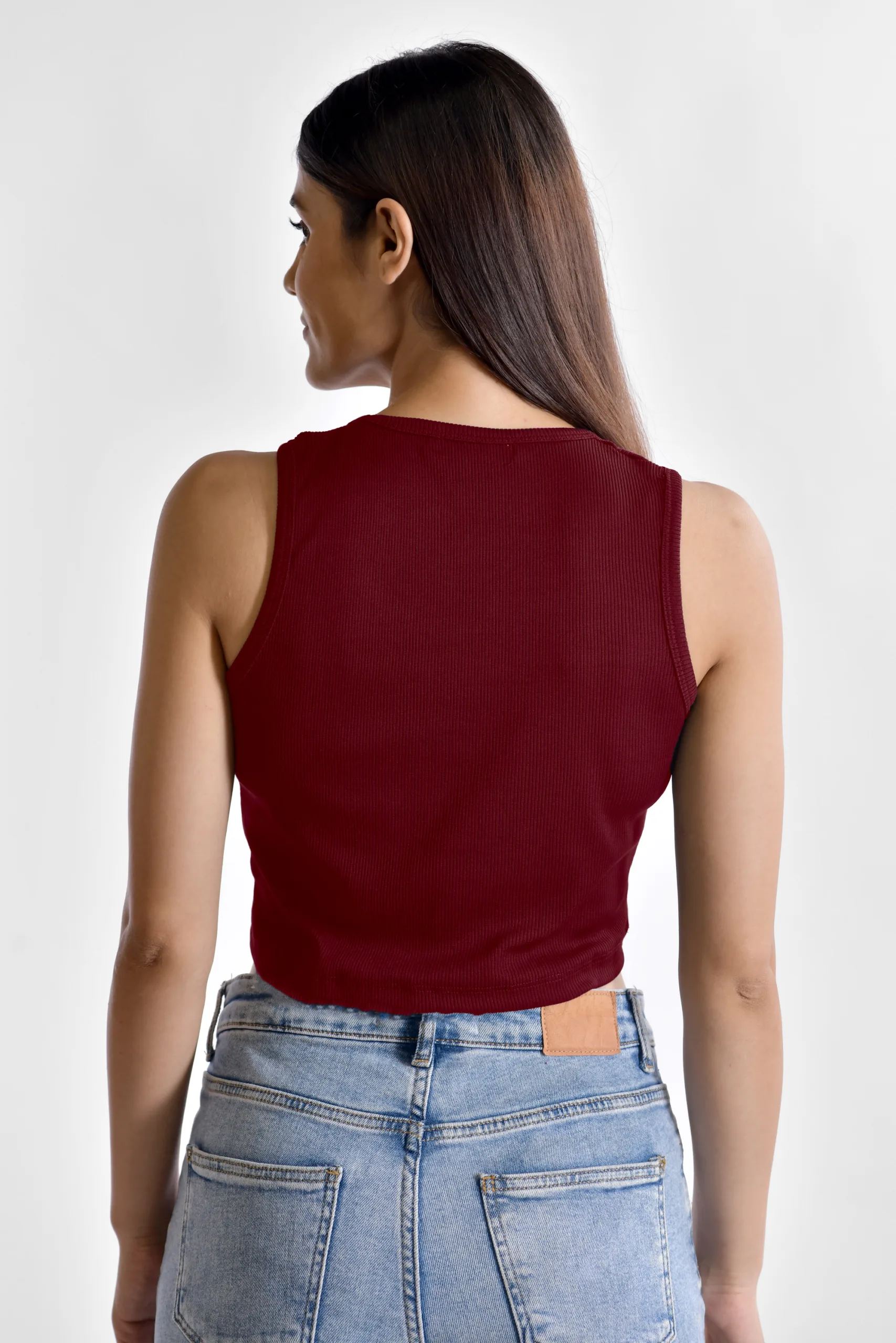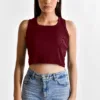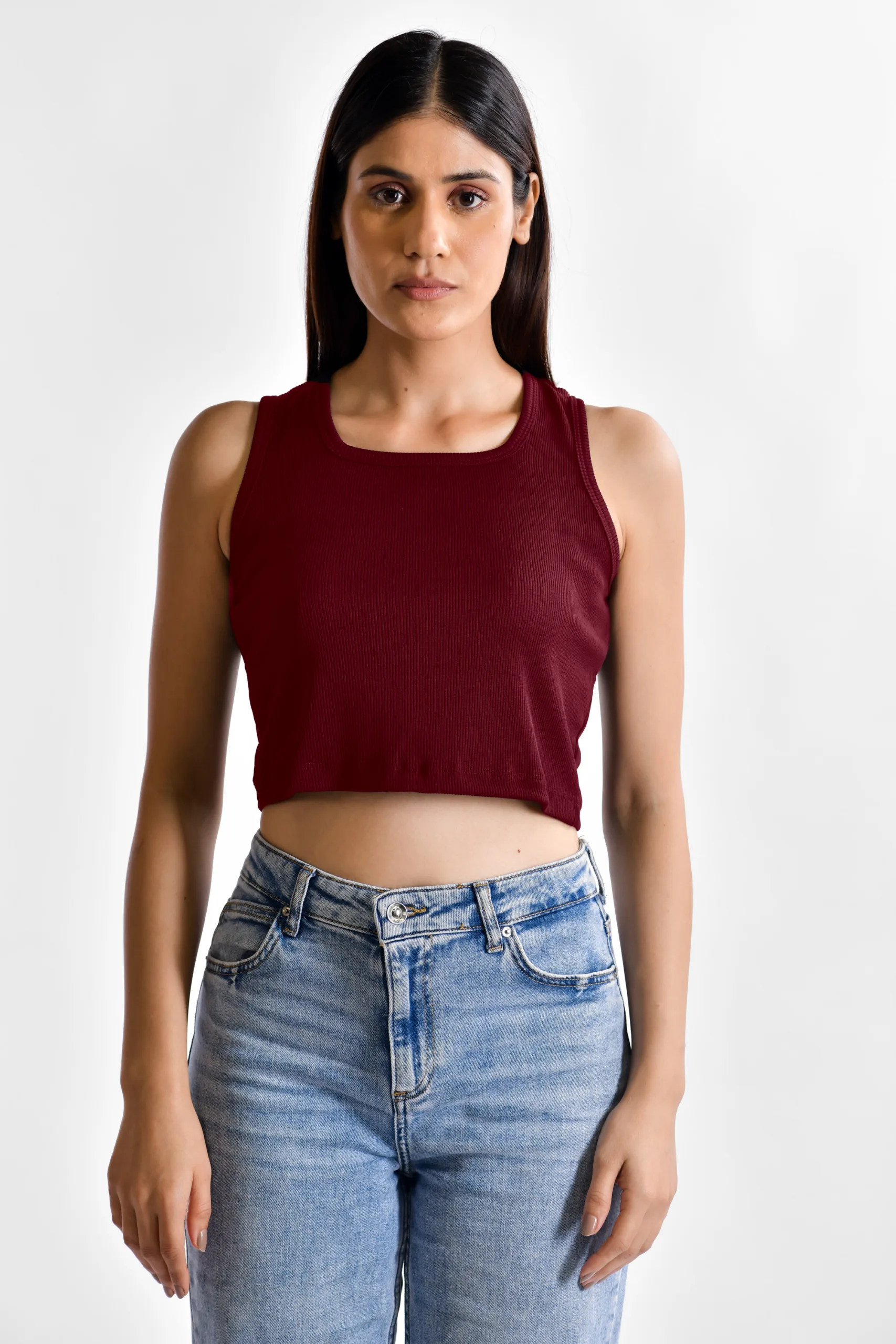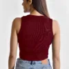 This exclusive sleeveless crop top for women features a sleek, solid design that effortlessly combines style and comfort. Crafted from high-quality materials, it offers a soft and breathable feel, making it perfect for warm weather or layering under jackets and cardigans.